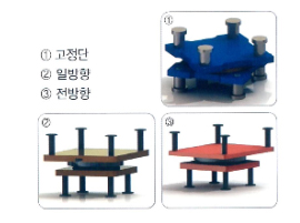 ③ 스프링의 지속적인 탄성 복원활동으로 타제품에 비해 지진시 변위가 작아 구조적으로 안정을 추구할 수 있으며, 지진 후 인위적으로 상부구조물을 원위치 시킬 수 있다.