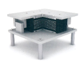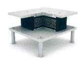 - 수직하중은 고무판을 통하여 균등하게 전달되며 수평력은 피스톤의 가이드에 의해 피스톤 및 하부로 전달.