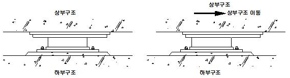 수평 : 변위 탄성체의 전단변형으로 수용